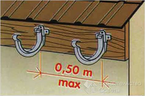- Крепление горизонтальных кронштейнов на кровельную лобовую доску применяется в том случае, когда последняя имеется в составе готовой к эксплуатации кровли. Этот вариант применяется обычно при обустройстве желобов из пластика.
