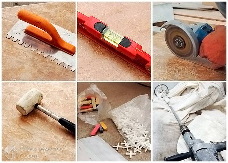 Прежде чем приступить к процессу укладки напольной плитки, необходимо подобрать все материалы, а именно: