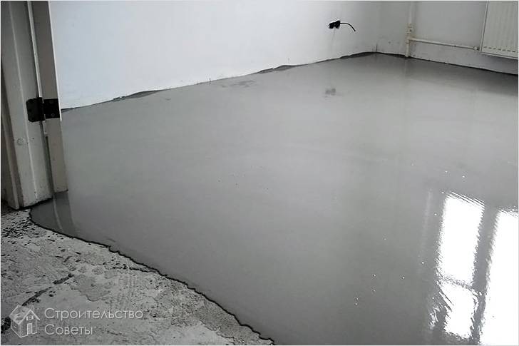 Согласно инструкции на упаковке сухую смесь защитного материала разводят в воде до образования однородной массы. При помощи валика или кисточки смесь наносится на пол. В углах для удобства можно использовать шпатель.