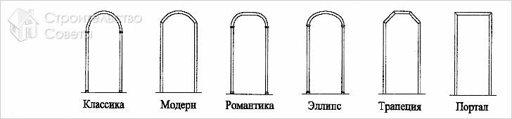 Казалось бы, что тут выбирать – арка, она и в Африке арка, но не все так просто! Хотя стиль остается один, все же формы отличаются и их можно сгруппировать в несколько типов. Это:‒