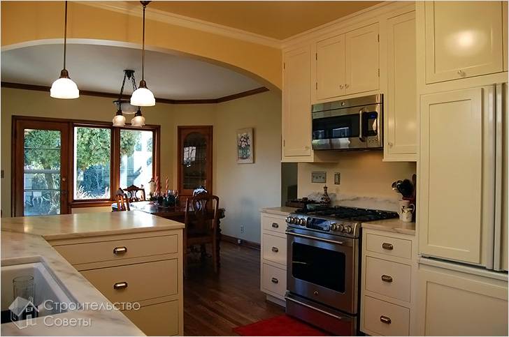 Теперь поговорим о дизайне помещения. Хорошо если одновременно продумывался дизайн с учетом будущей арки, в противном случае можно столкнуться с тем, что задуманную арку сделать не получится. Это можно проиллюстрировать на примере: Допустим, у вас кухня выполнена в восточном стиле, которому присущи формы, создающие эффект большой высоты помещения. В таком случае классический дизайн арки будет наиболее удачным, но если его не удастся сделать, то достичь желаемого эффекта не получится.