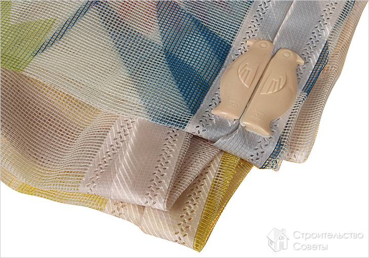 - На ленте с магнитами нужно подрезать уголок резинки, иначе просунуть их в сетку будет непросто.