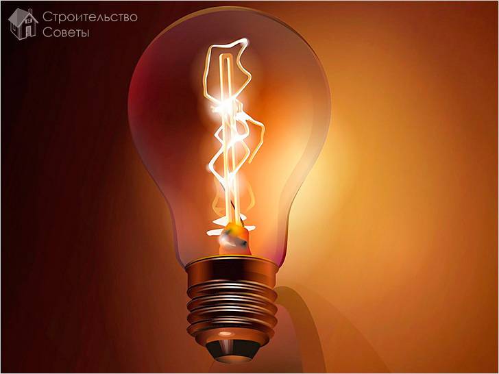 - Лампы накаливания. Это одна из наиболее распространённых групп осветительных элементов, применяемых в быту. Источником света такая лампа становится в результате нагревания до высоких температур нити, изготавливаемой, чаще всего из вольфрама. Нагревание происходит в результате воздействия электрического тока. В целях предотвращения реакции окисления в колбе лампы образуется вакуум. Можно добавить, что существует подвид таких ламп, а именно рефлекторные лампы накаливания. Их поверхность покрывается тонким слоем серебра, в результате чего свет получается сфокусированным в определённую точку.
