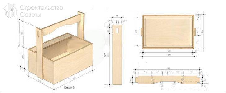 Например, если речь идёт о домашнем использовании время от времени, то можно обойтись и простым вариантом, по сути являющимся коробкой с ручкой, а если имеет место частое использование достаточно большого количества инструментов, например, в силу служебных обязанностей, то вполне уместным будет использовать крупный ящик органайзер. Решение необходимо принимать индивидуально и когда оно будет принято, можно переходить к изготовлению.