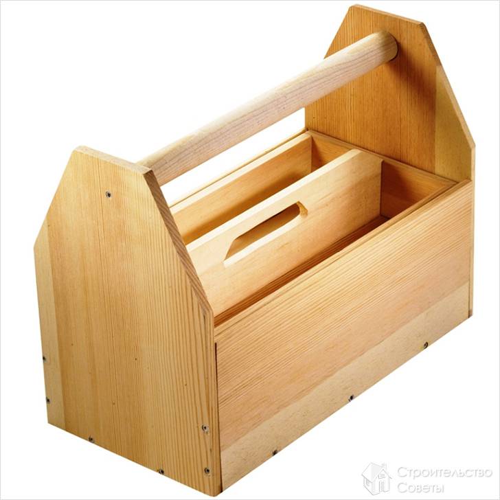 В качестве примера того, как изготовить ящик для инструментов, предлагаем к рассмотрению простой его вариант. Он будет представлять собой средних размеров ящик, оборудованный ручкой для переноски. В качестве материала изготовления, в принципе, можно использовать самые различные материалы. Может подойти и металл, и фанера, и даже пластик. Решать, что использовать нужно, исходя из личных предпочтений, но традиционно, для этих целей используется обрезная доска хвойных пород, как наиболее простой в обработке и доступный материал, обладающий достаточно неплохими качествами.
