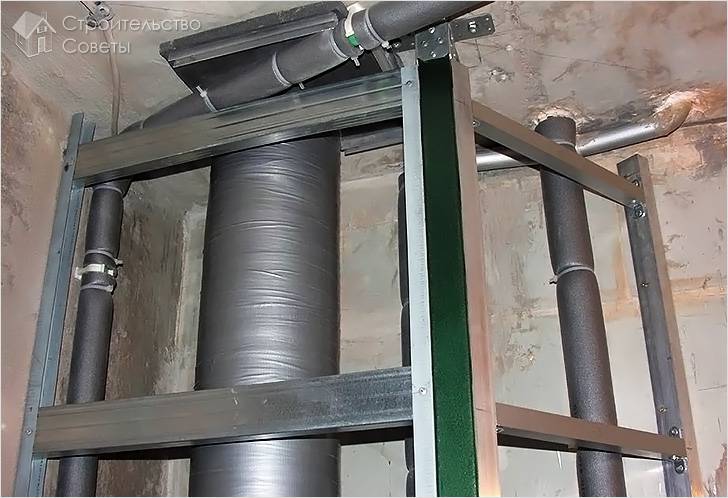 Итак, первым делом нужно разрезать звукоизоляционный материал по размеру. Он должен полностью огибать трубу. После того как она обвернута, нужно закрепить шумоизоляционный материал. Для этого ее фиксируют проволокой или крепежами, на расстоянии от 20 до 25 см. При использовании звукоизоляционной ленты, стояк плотно обматывается, а витки накладываются друг на друга. Когда позволяет место, конструкцию можно скрыть за коробом из гипсокартона или пластика. Свободное пространство заполняется вспененным полиэтиленом. Но есть один важный момент: нужно предусмотреть доступ до стояка, так как заменить кусок фановой трубы будет невозможно.