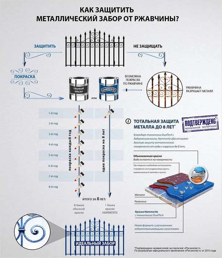 При использовании краски по металлу Hammerite обработанные поверхности способны сохранять свои эксплуатационные характеристики до 8 лет, что позволяет сэкономить не только средства, но и время, что подчас гораздо важнее.